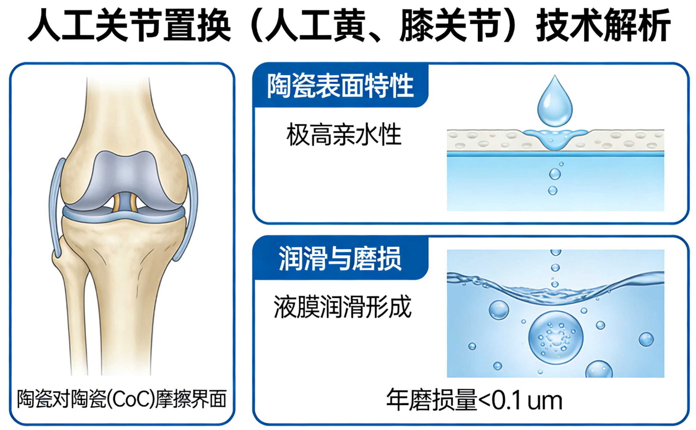 L’interface de friction céramique sur céramique (CoC) est actuellement reconnue comme la meilleure solution. En raison de l'hydrophilie extrêmement élevée de la surface céramique, un film liquide de lubrification peut se former entre les joints et son volume d'usure annuel est généralement inférieur à 0,1 micron , prolongeant la durée de vie des objets importés de 15 ans à plus de 30 ans. 2. Restauration dentaire de précision